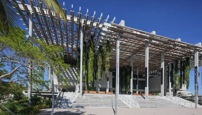 PAMM is housed in a striking contemporary building designed by the renowned architectural firm Herzog & de Meuron. The architecture itself is a work of art, characterized by its unique design that combines simplicity, transparency, and openness. The building features large glass walls that provide panoramic views of Biscayne Bay, the surrounding cityscape, and the nearby waterfront.